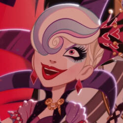 | Courtly is the type to have an aggressive and assertive, power-hungry exterior and an insecure interior, often referring to herself as “lowly Courtly Jester”. Her Joker heritage also makes her mischievous and a liar. |